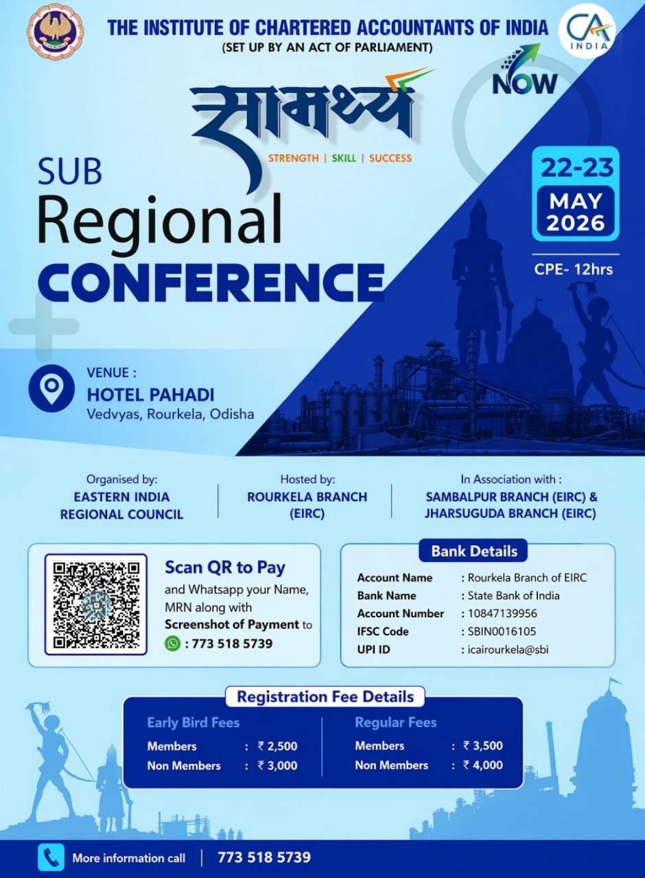 🌟 Sub-Regional Conference 2026 🌟 Samarthya – Strength | Skill | Success 📅 22nd & 23rd May 2026, Rourkela Branch (EIRC) In Association with Sambalpur Branch (EIRC) & Jharsuguda Branch (EIRC)