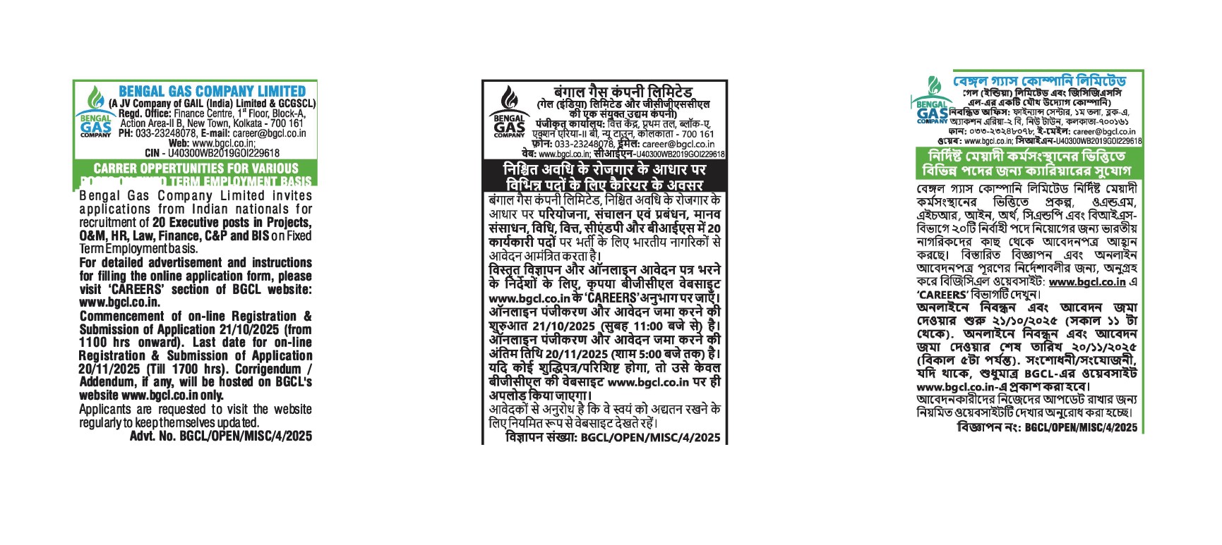Finance & Accounts on Fixed Term Employment basis at Bengal Gas Company Limited