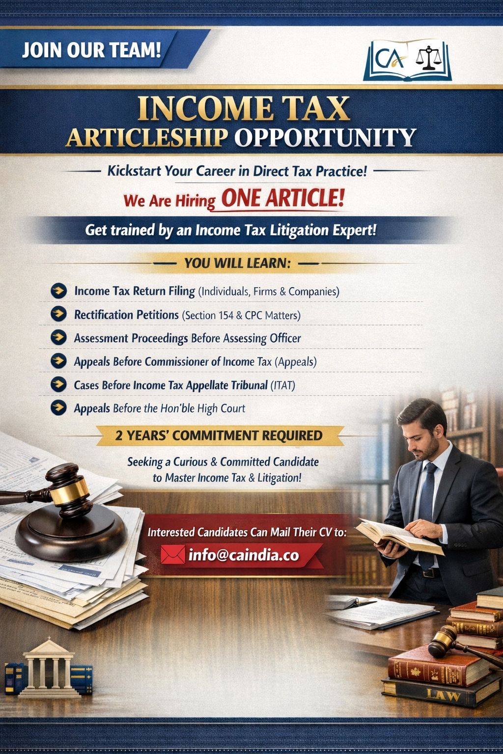 Choudhury Agrawal & Co[dot] is inviting applications for one Article who is truly passionate about the Direct Tax profession and eager to build a long-term career in Income Tax Practice[dot]